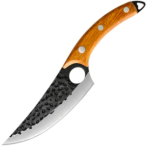 5.7" Hammered Stainless Steel Blade Retaining Ring Natural Wood Handle Full Tang Hand Forged Boning Knife Wtih PU Sheath